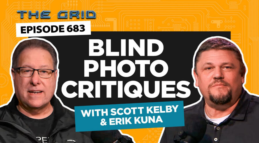 Scott Kelby and Erik Kuna review viewer-submitted images in a Blind Photo Critiques episode of The Grid, sharing tips on composition, white balance, and editing.